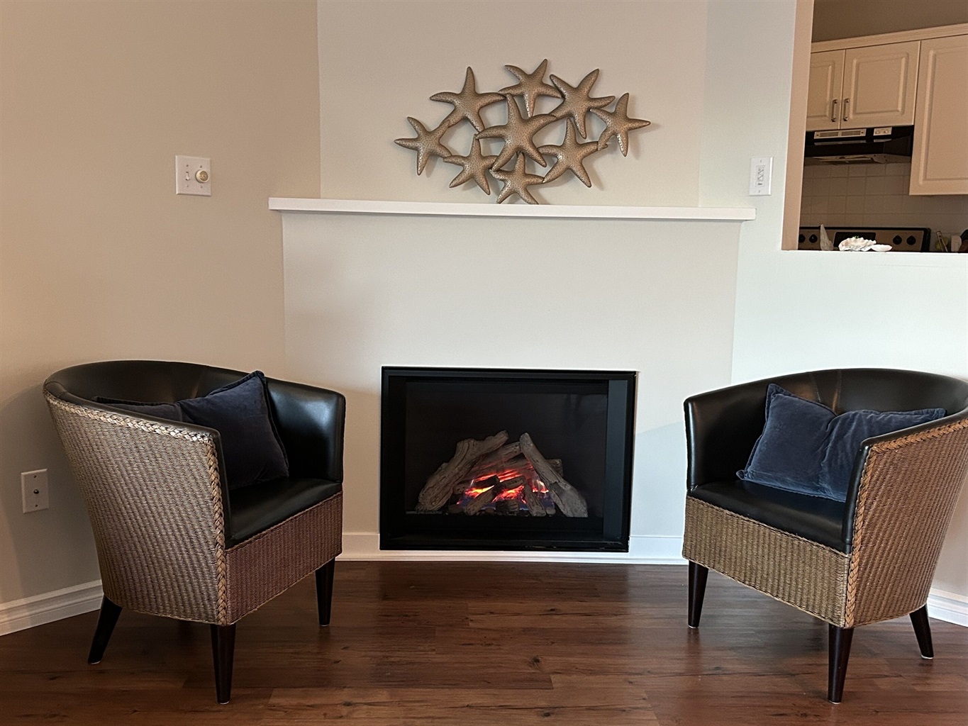 The main floor has the living room with fireplace and ROKU TV, dining area, a fully equipped kitchen, a four piece bathroom, natural gas connected barbeque and two decks.